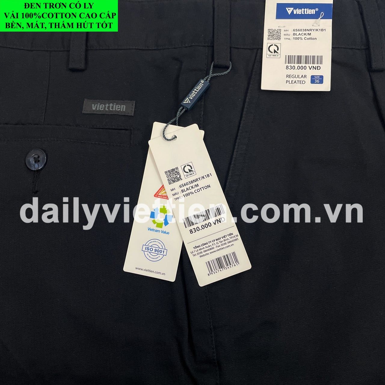 Quần Kaki Đen có ly Việt Tiến số 925.