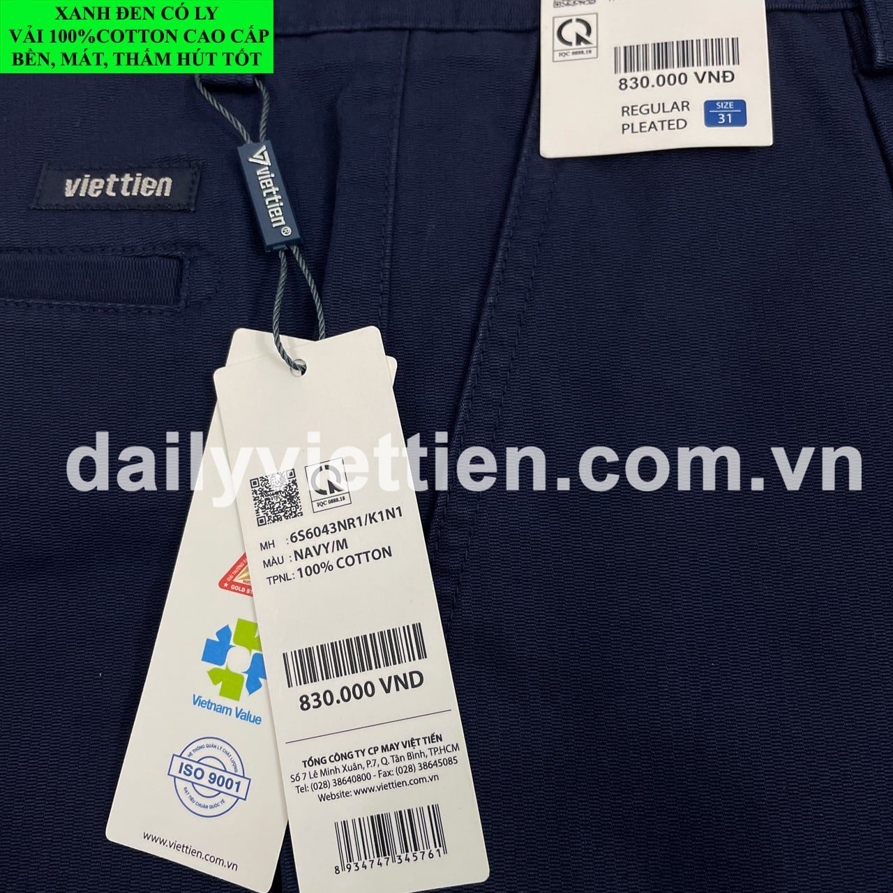 Quần Kaki Xanh Đen Có Ly Việt Tiến số 910.