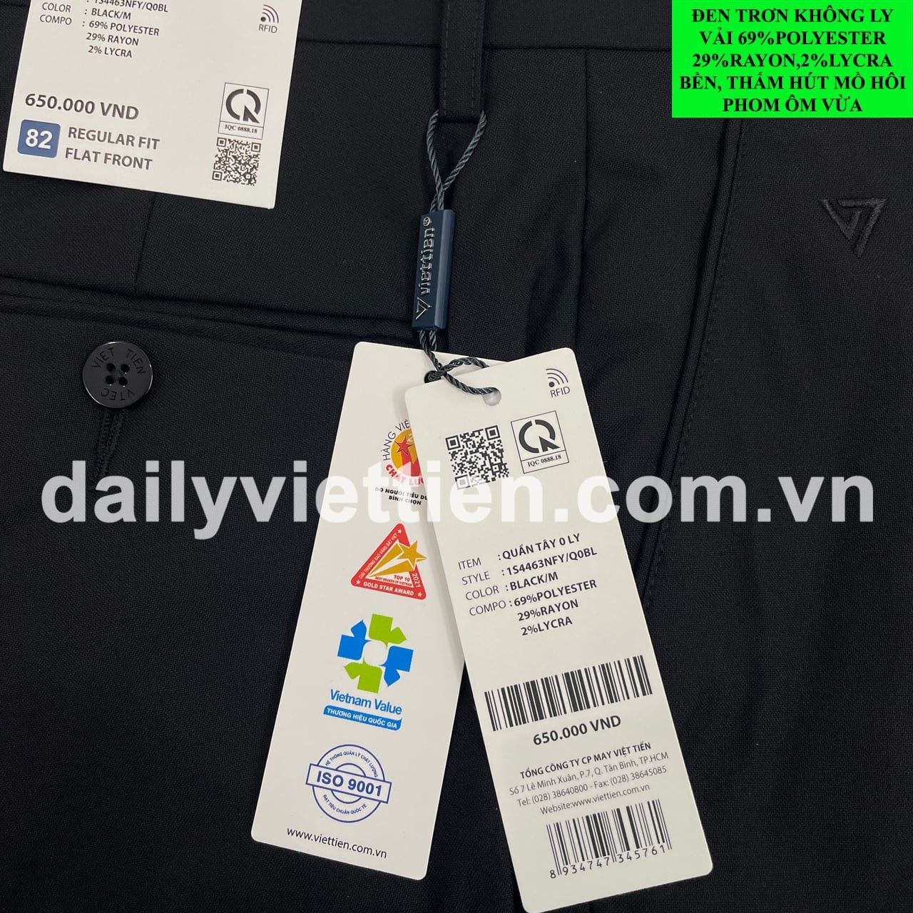 Quần tây Đen Việt Tiến số 760 không ly phom ôm Regular Fit.