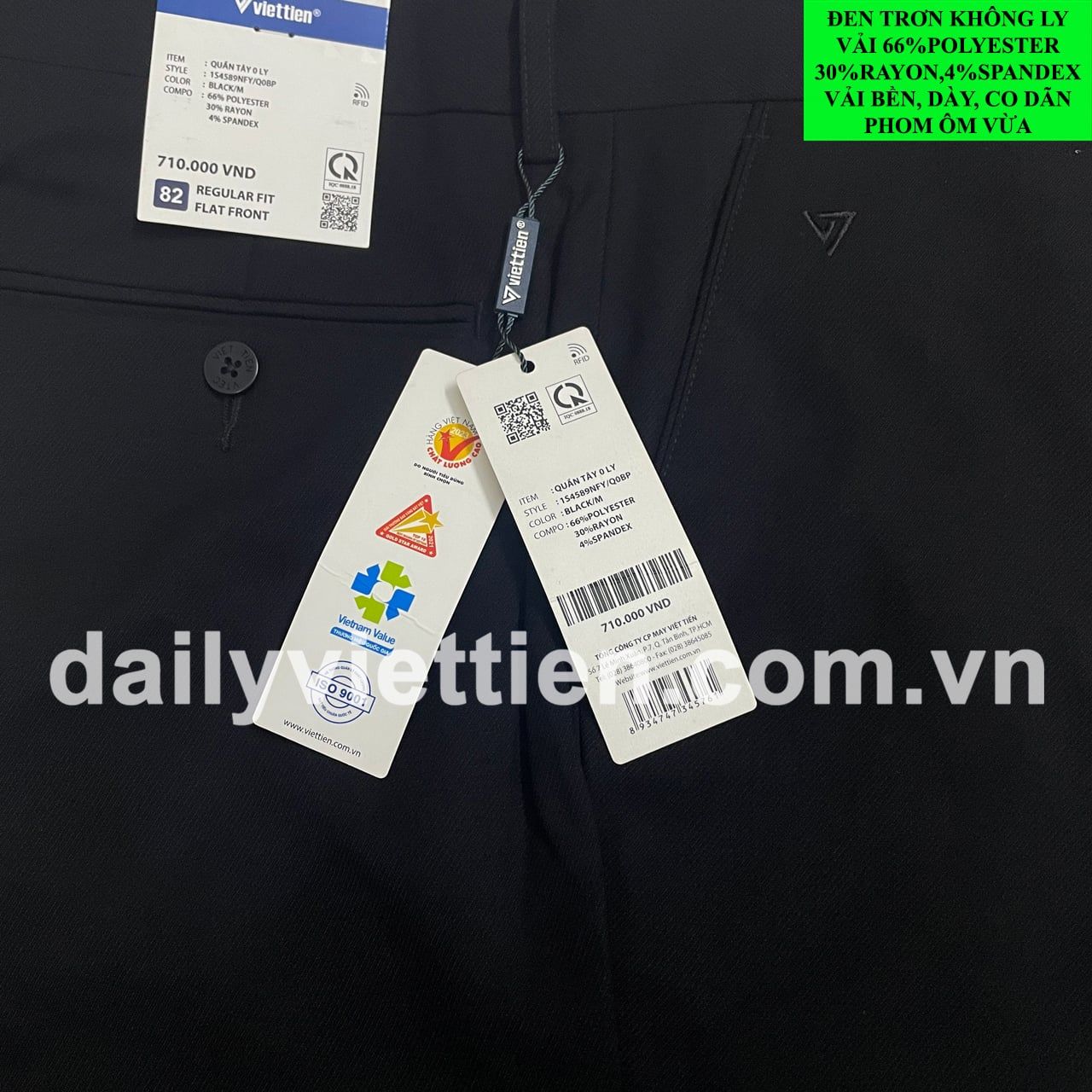 Quần tây Việt Tiến Đen Không Ly số 886 phom ôm