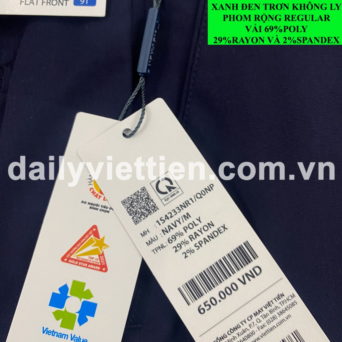 Quần tây Xanh Đen Việt Tiến không ly số 643.