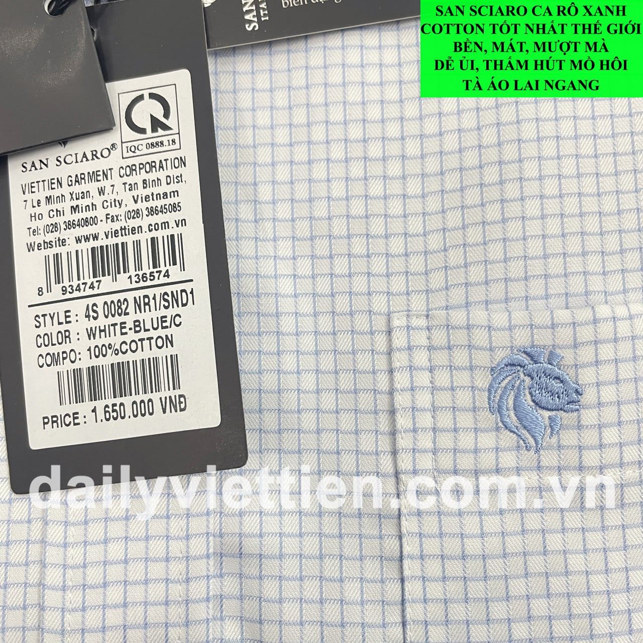 Sơ mi San Sciaro Việt Tiến Cao Cấp Lai Ngang số 1958.