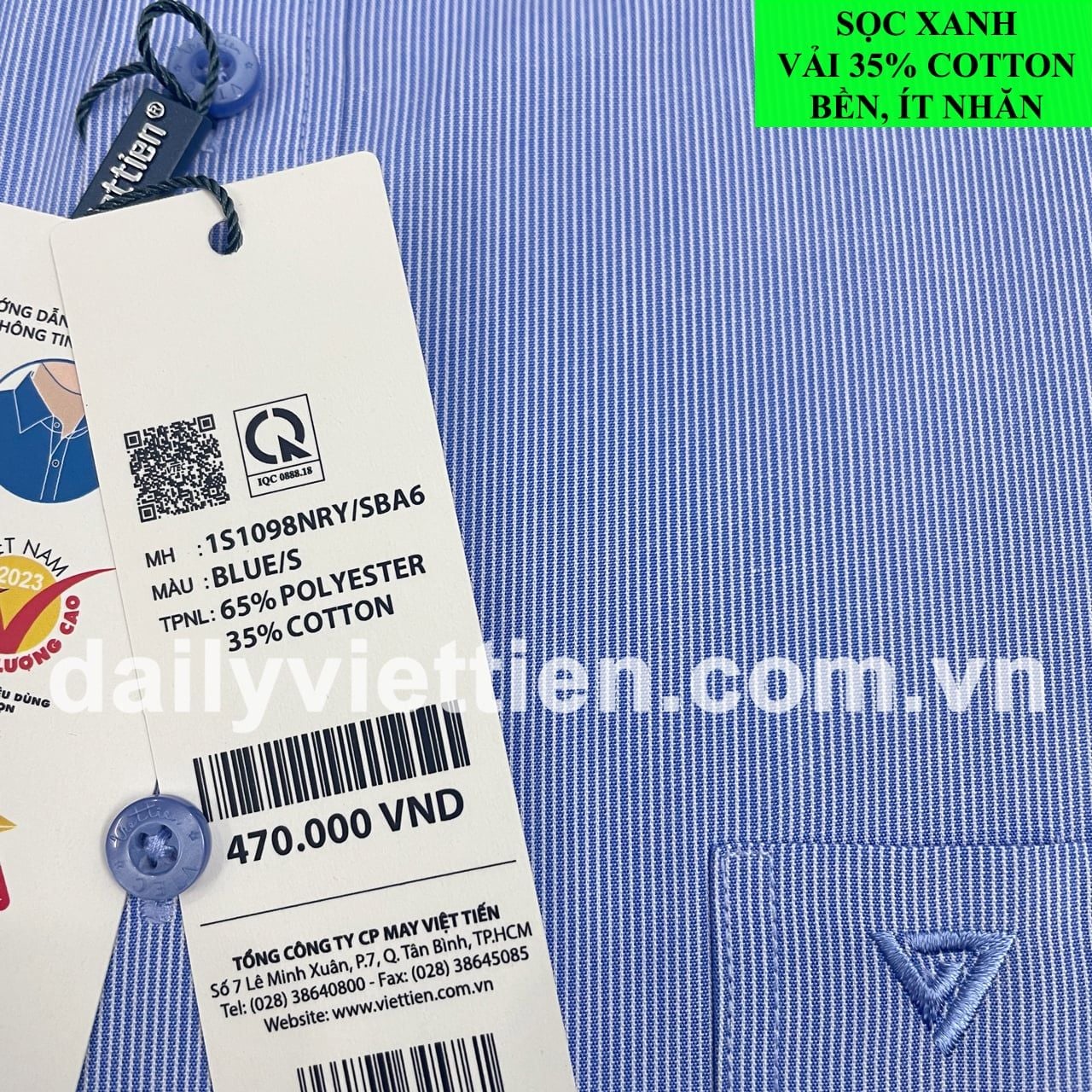 Vải Cotton bền, ít nhăn (35% Cotton và 65% Polyester).