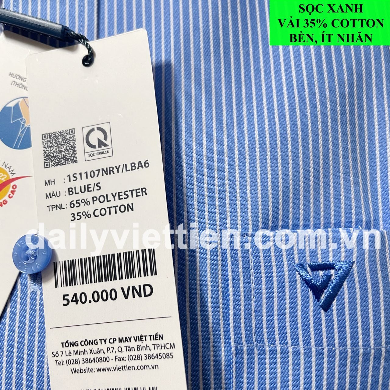 Vải 35% Cotton bền, ít nhăn.